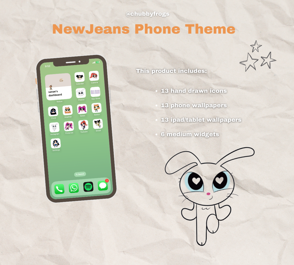 🐰 13 Phone App Icons: Infuse your app icons with the NewJeans x Powerpuff Girls' charm and style. From your everyday apps like mail, phone, and photos to adorable hand-drawn icons that perfectly match your aesthetic.